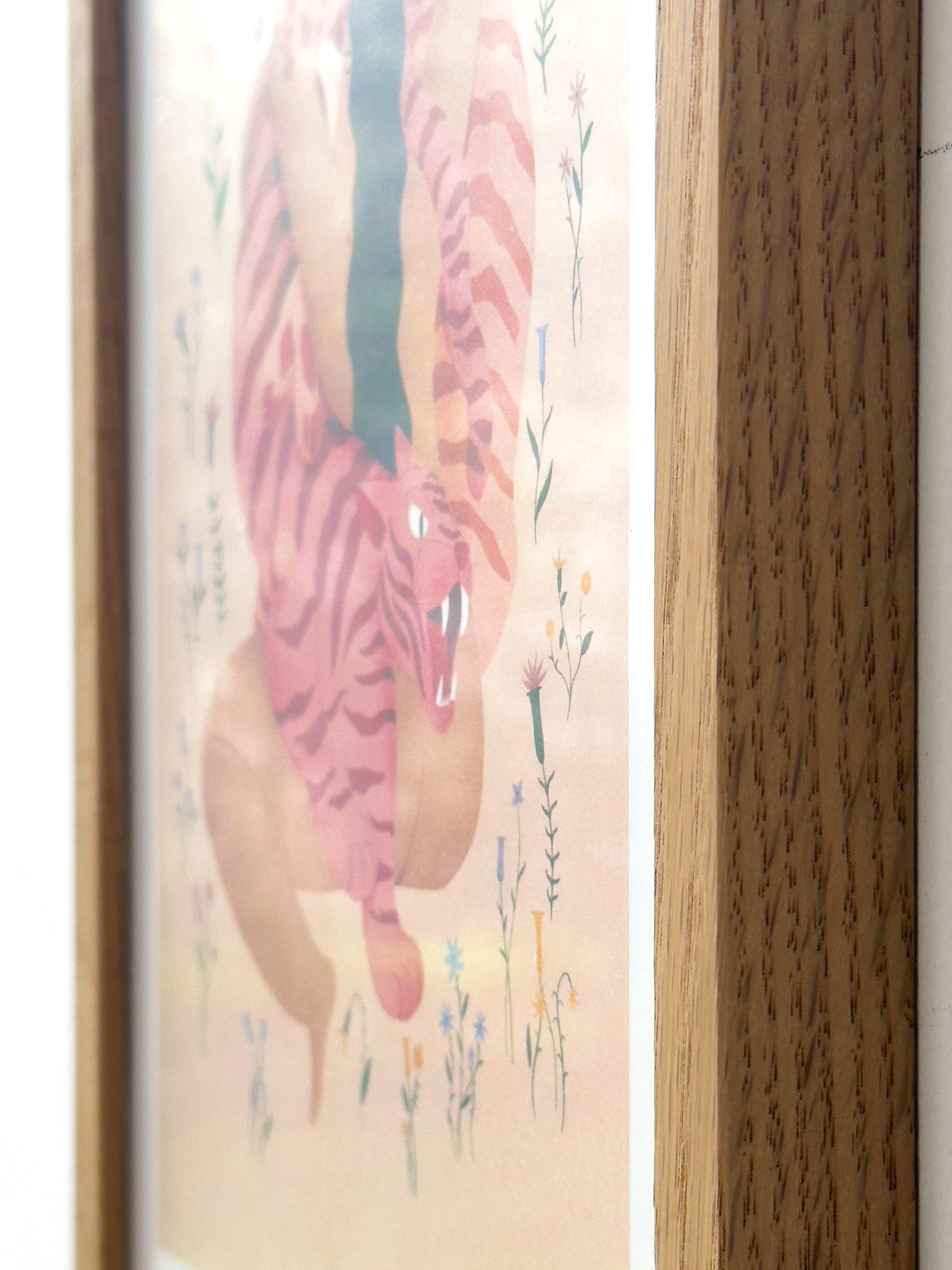 Le cadre, lui aussi fabriqué en France avec du chêne massif issu de forêts gérées durablement, offre ainsi un support élégant pour mettre en valeur votre acquisition artistique.
