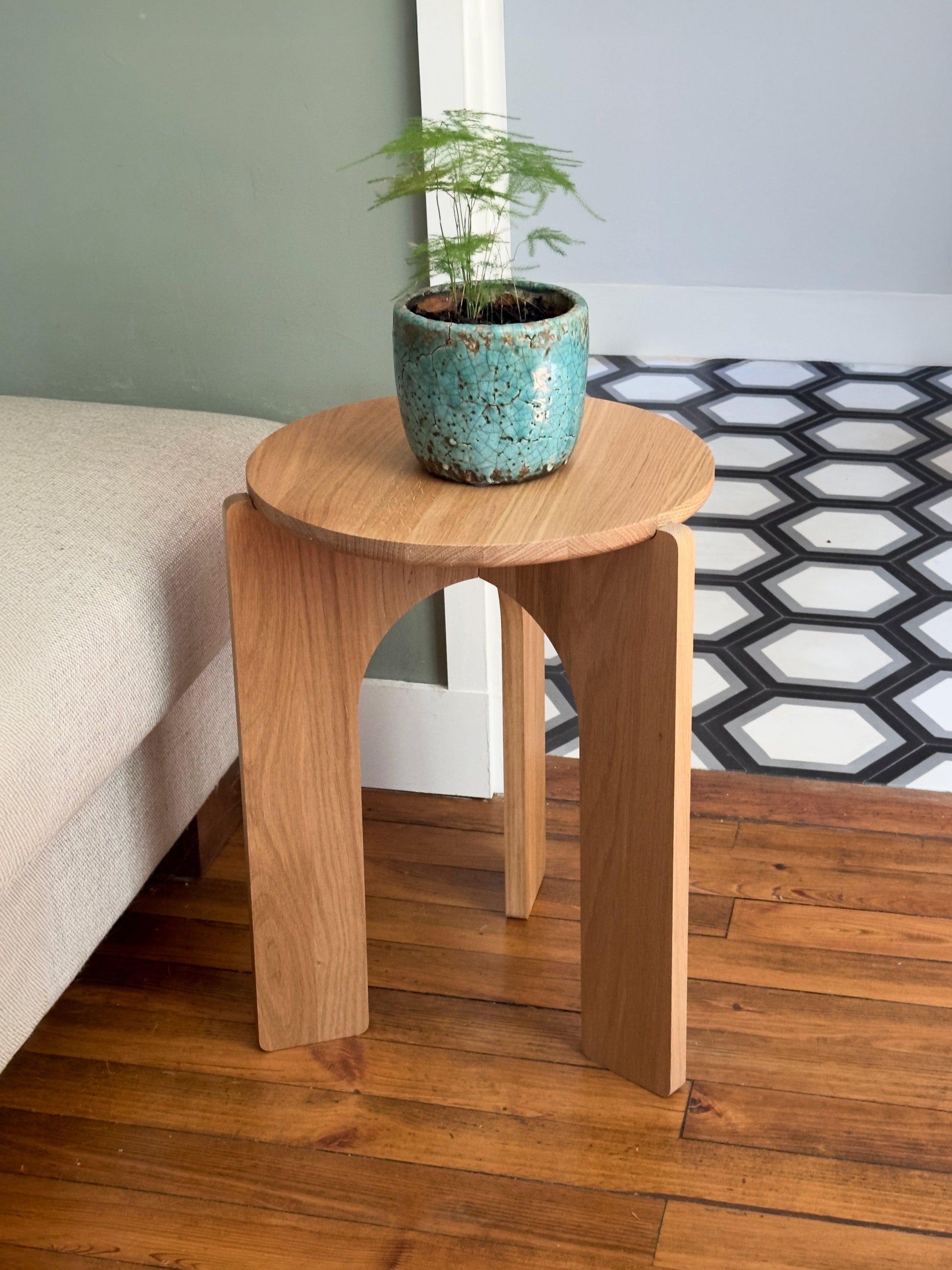ARCHE, une table polyvalente, parfaite pour être utilisée comme bout de canapé ou table de chevet. Avec son chêne massif, elle séduit par son élégance intemporelle qui convient à tous les intérieurs. Son matériau naturel et noble apporte une touche chaleureuse et authentique à votre salon ou chambre.