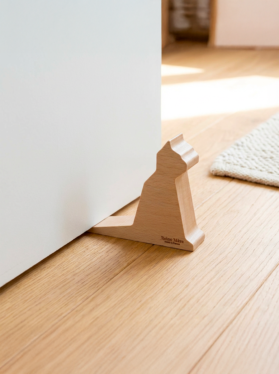 Avec son design ludique en forme de queue de chat, Sachat - Cale porte en hêtre de Reine Mère apporte une touche décorative et amusante à votre intérieur tout en empêchant vos portes de claquer !