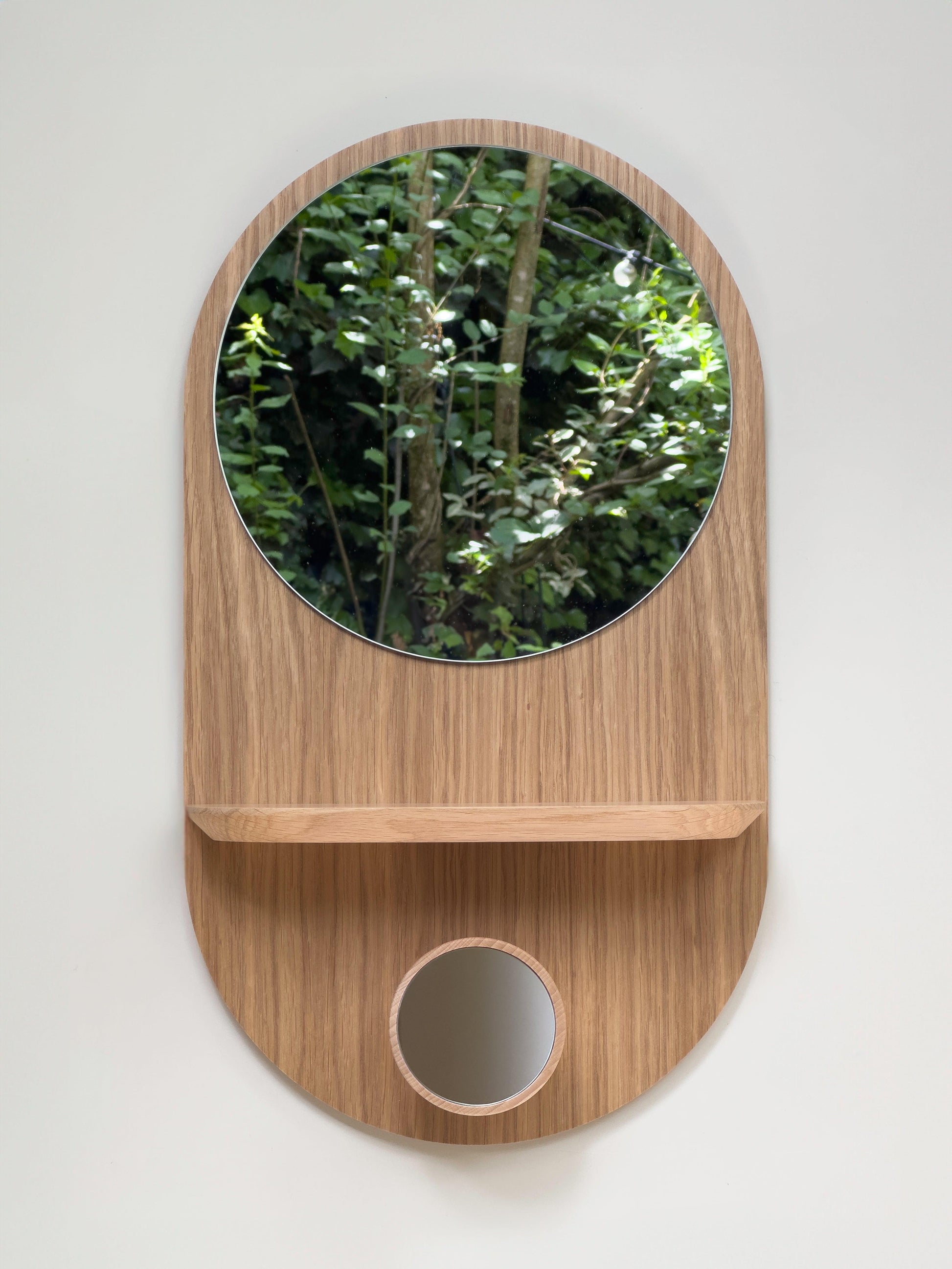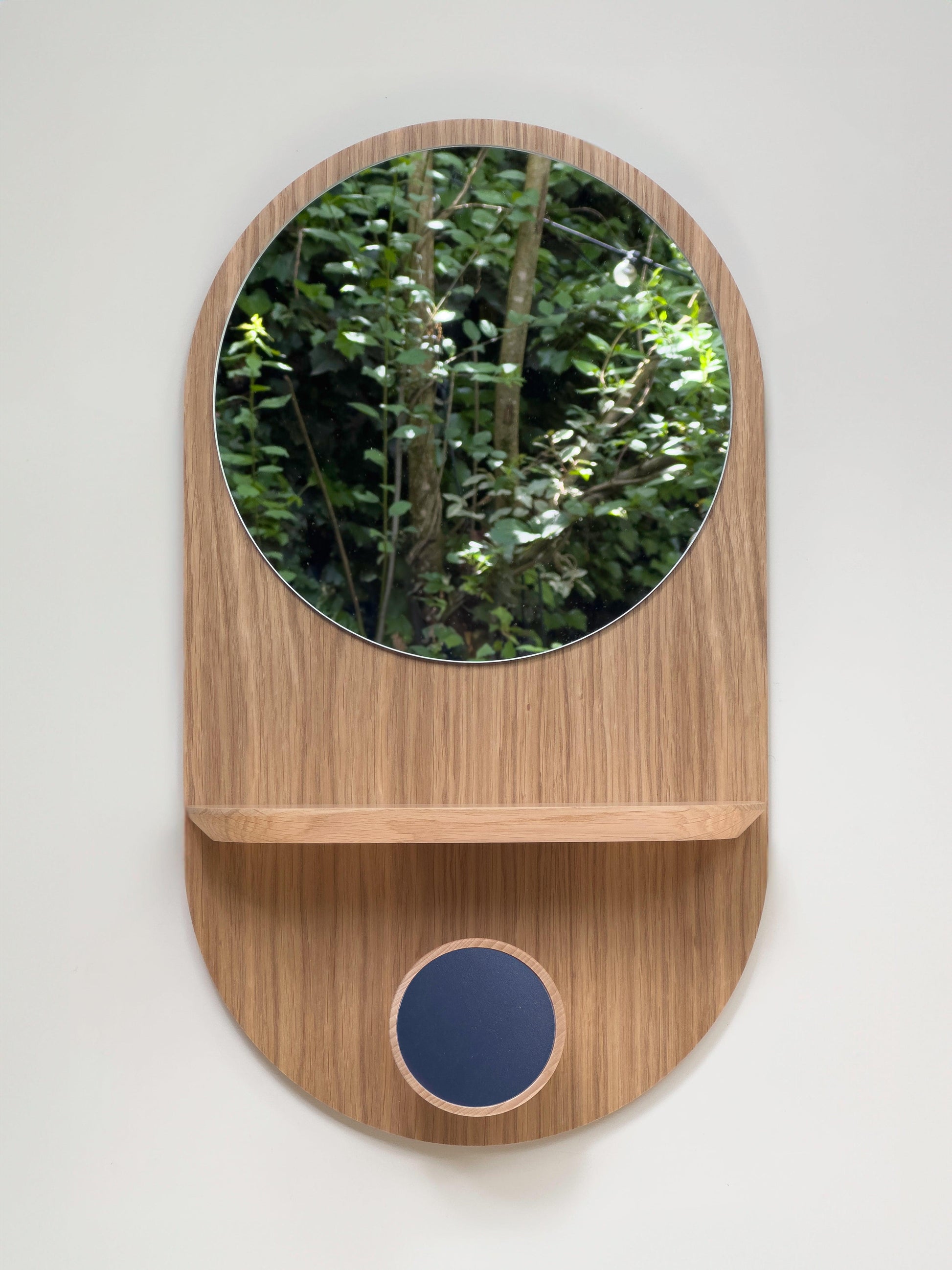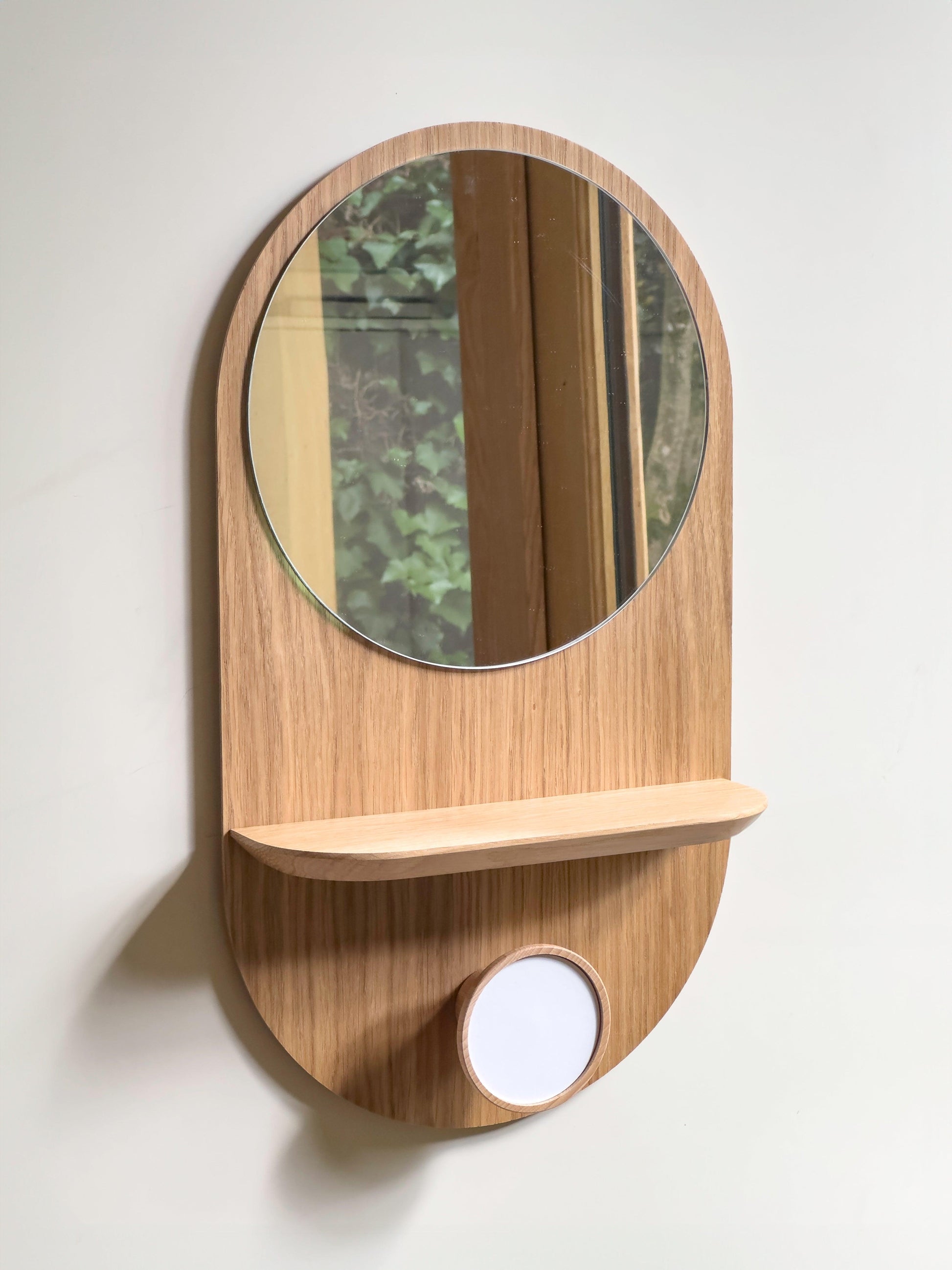 Éclipse Clairon - Miroir avec étagère et patère en chêne