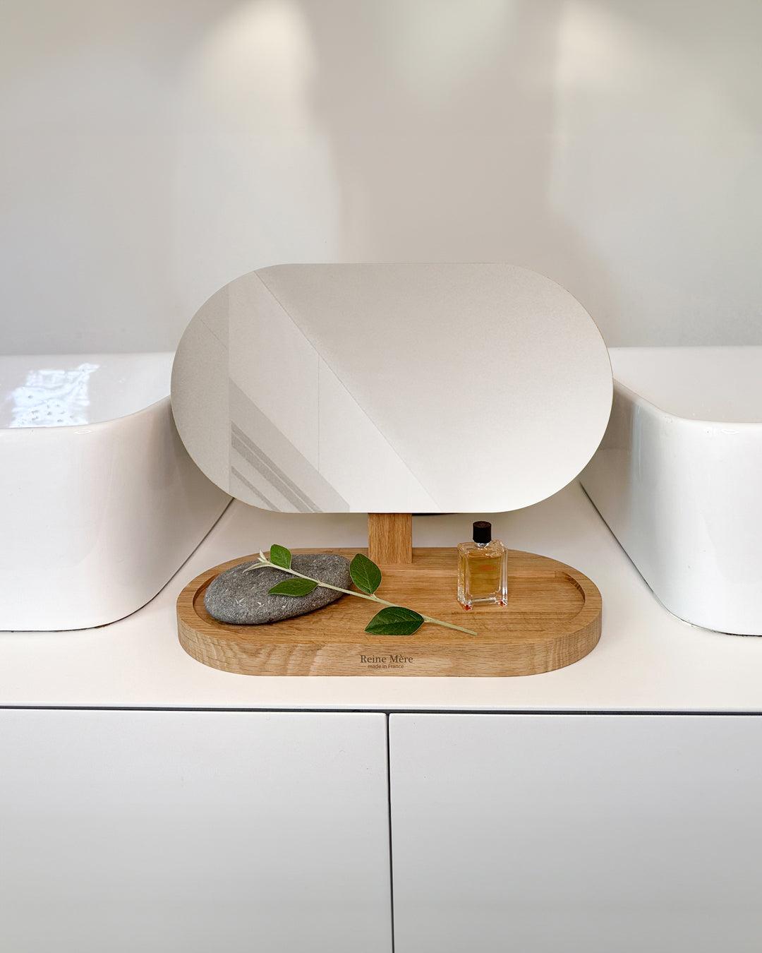 Merveilles - Le miroir avec rangement en chêne est bien plus qu'un simple objet déco : c'est une pièce unique qui ajoutera du caractère et du style à votre intérieur. Compact et minimaliste, il allie praticité et esthétique, parfait pour toutes les pièces de la maison.