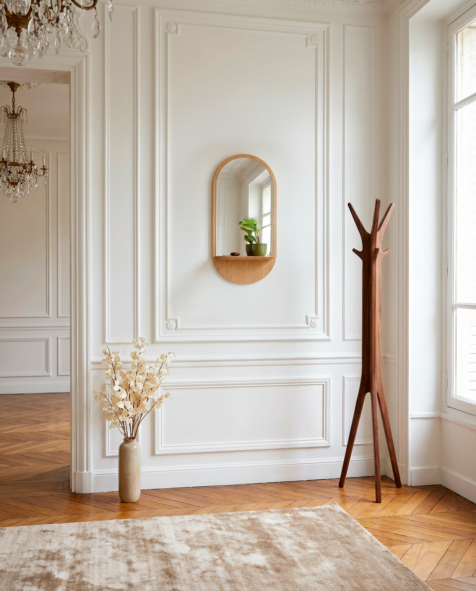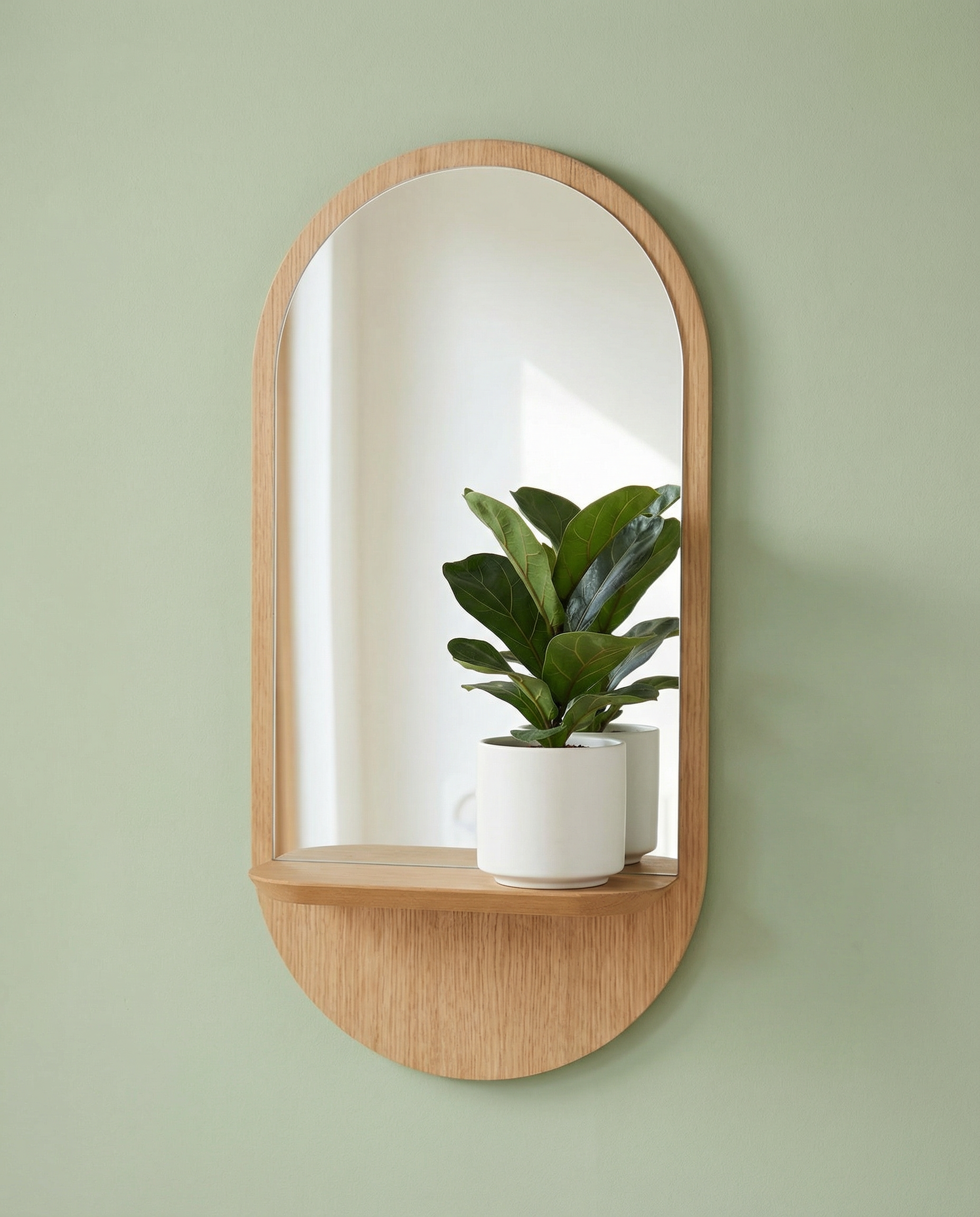 Solstice - Miroir avec étagère en chêne