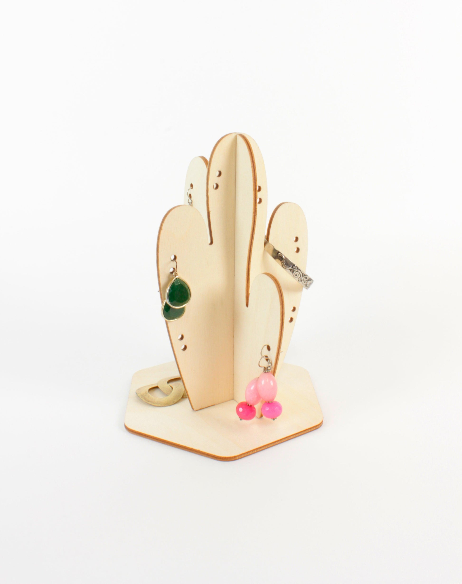 Une collection de quatre porte-bijoux cactus que vous pouvez manipuler sans risque, facile à monter, en 3 pièces 100% bois de bouleau, garantie sans épines.