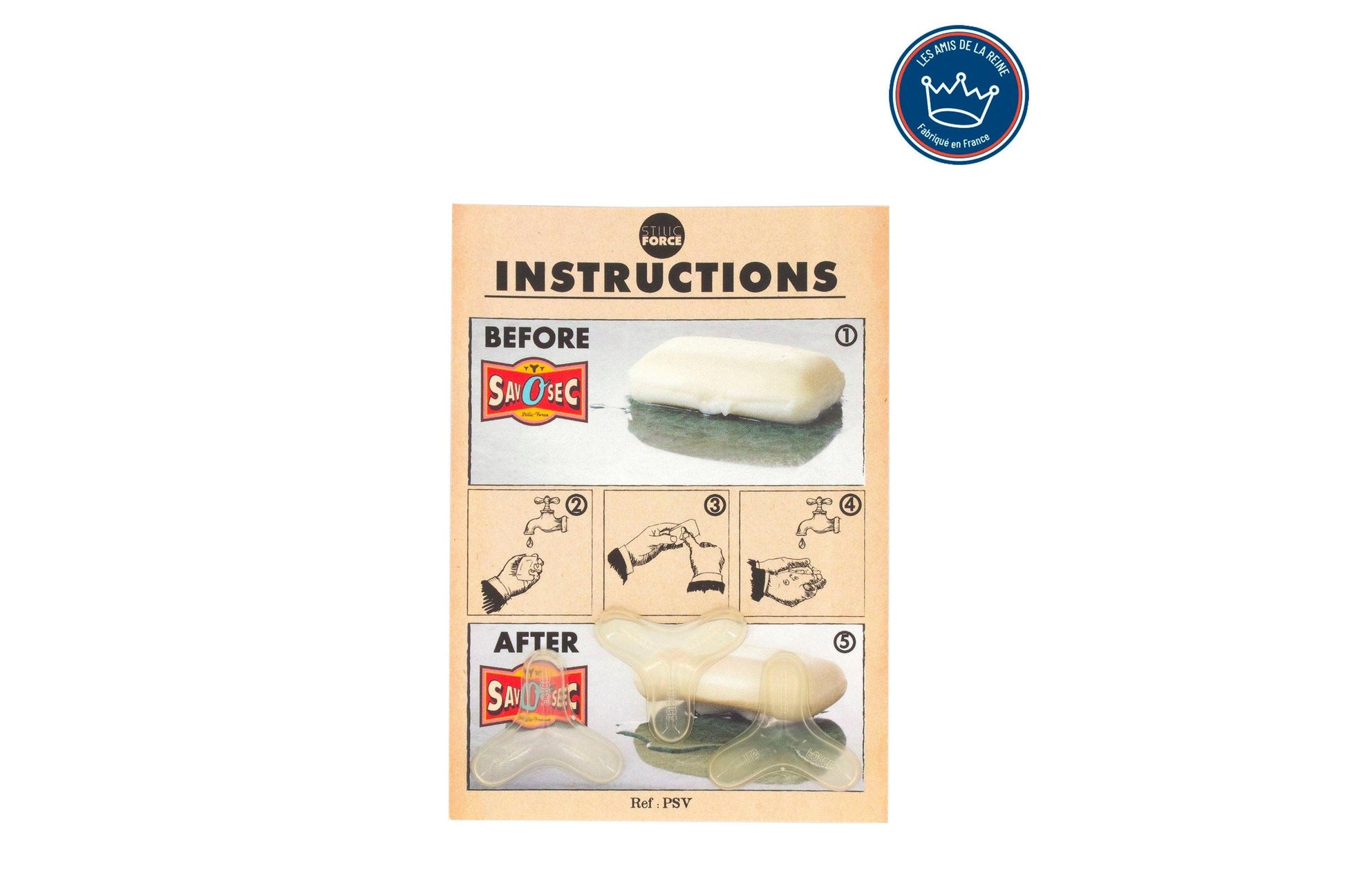 SavOsec de la marque Stilic Force est un petit trépied qui s'accroche au savon préservant une couche d'air sous suffisante pour garder ce savon au sec ! SavOsec permet de grosses économies de savon ! Vous pouvez même remplacer vos gel douche en bouteille par des savons naturels équipés de SavOsec.