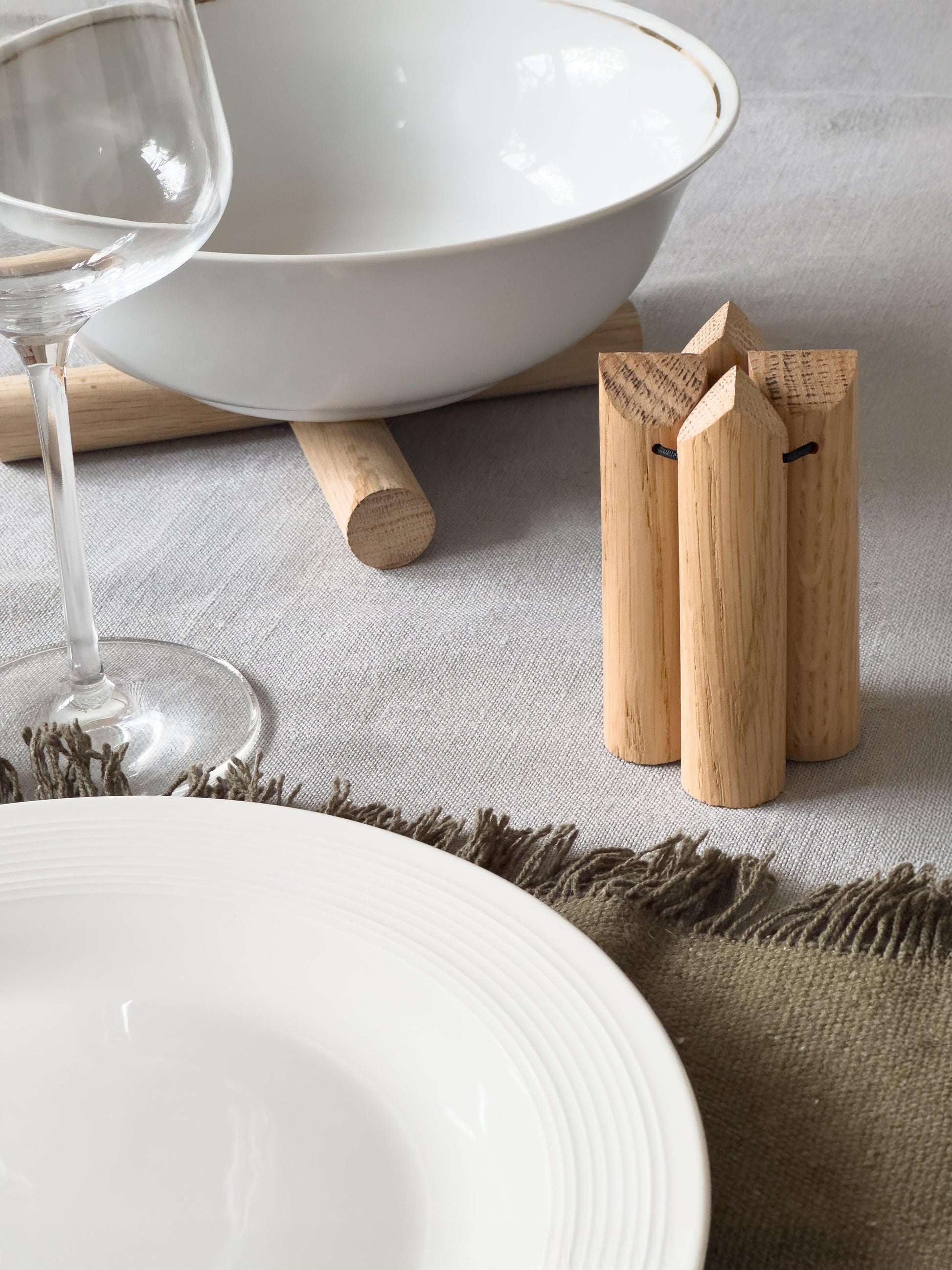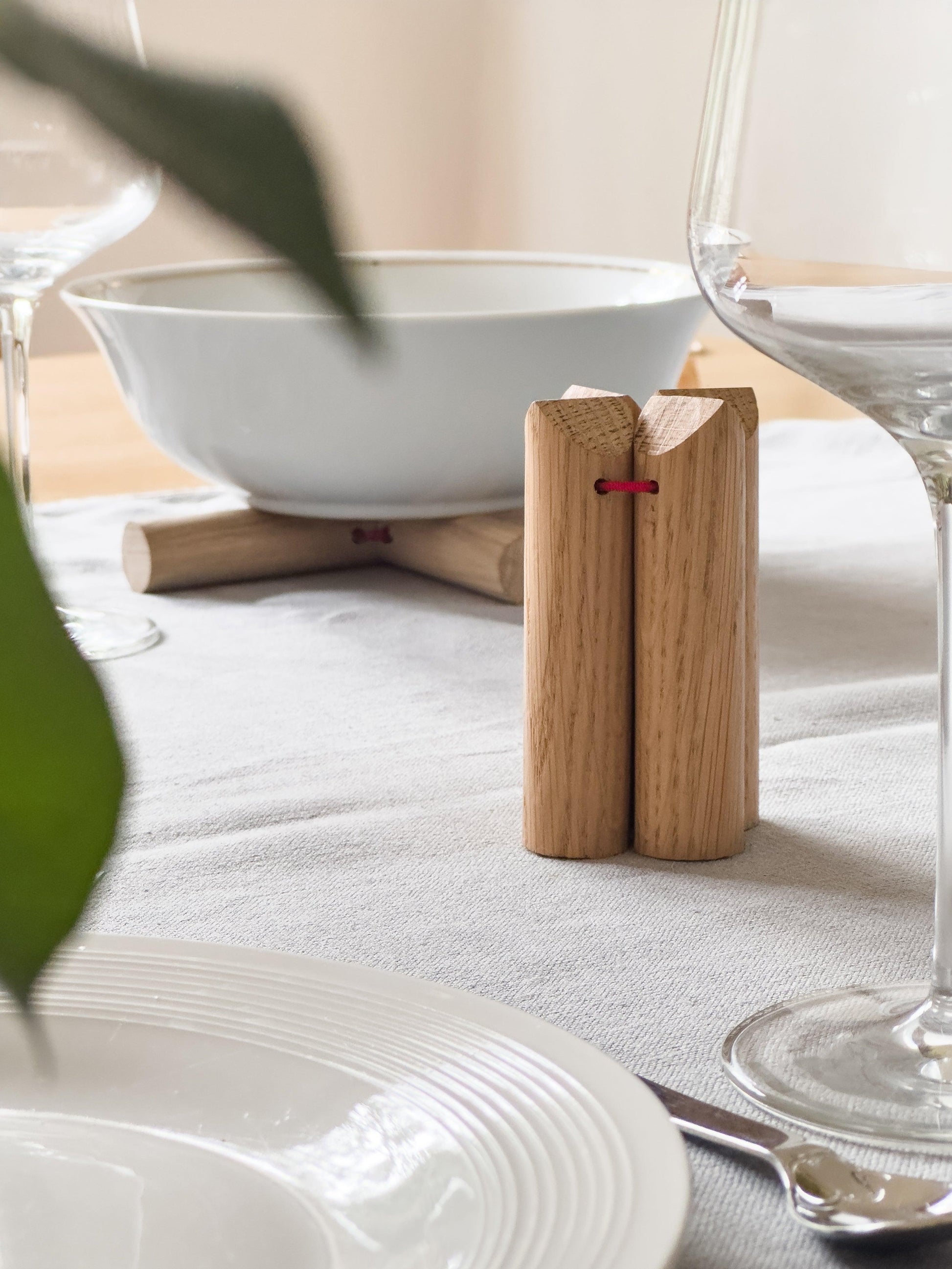 Fagot est un dessous de plat élégant et pratique en chêne massif huilé, parfait pour tous vos repas de la journée, il protégera toutes vos surfaces avec style.